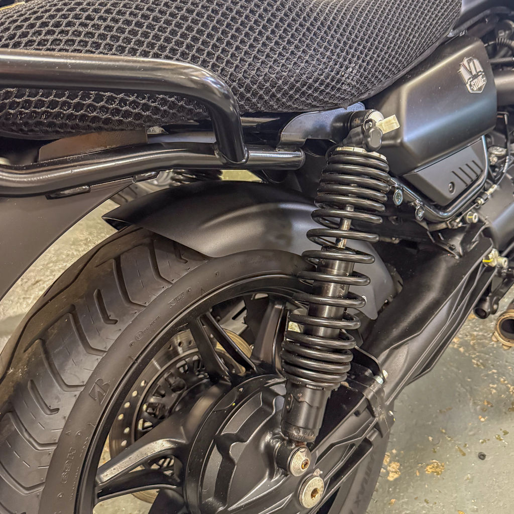 Pyramid Huggers are one of our trademark products designed specifically for your motorcycle and offering substantial added protection and individual styling. Where possible we incorporate protection that extends below the swingarm together with a built-in chainguard to replace your existing guard meaning that your shock absorber and chain are fully protected. Available in a wide range of colour schemes our Huggers will arrive safely packaged together with comprehensive fitting instructions and any additional fittings which may be required. No modification to your motorcycle is necessary.