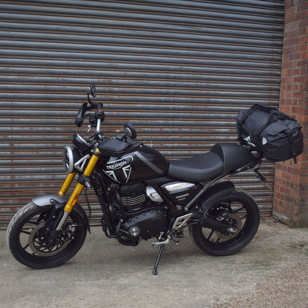 Upgrade your Triumph Scrambler 400X with our premium rear hugger, designed for style, practicality, and protection. This two-piece kit combines durability and aesthetics to enhance your ride.