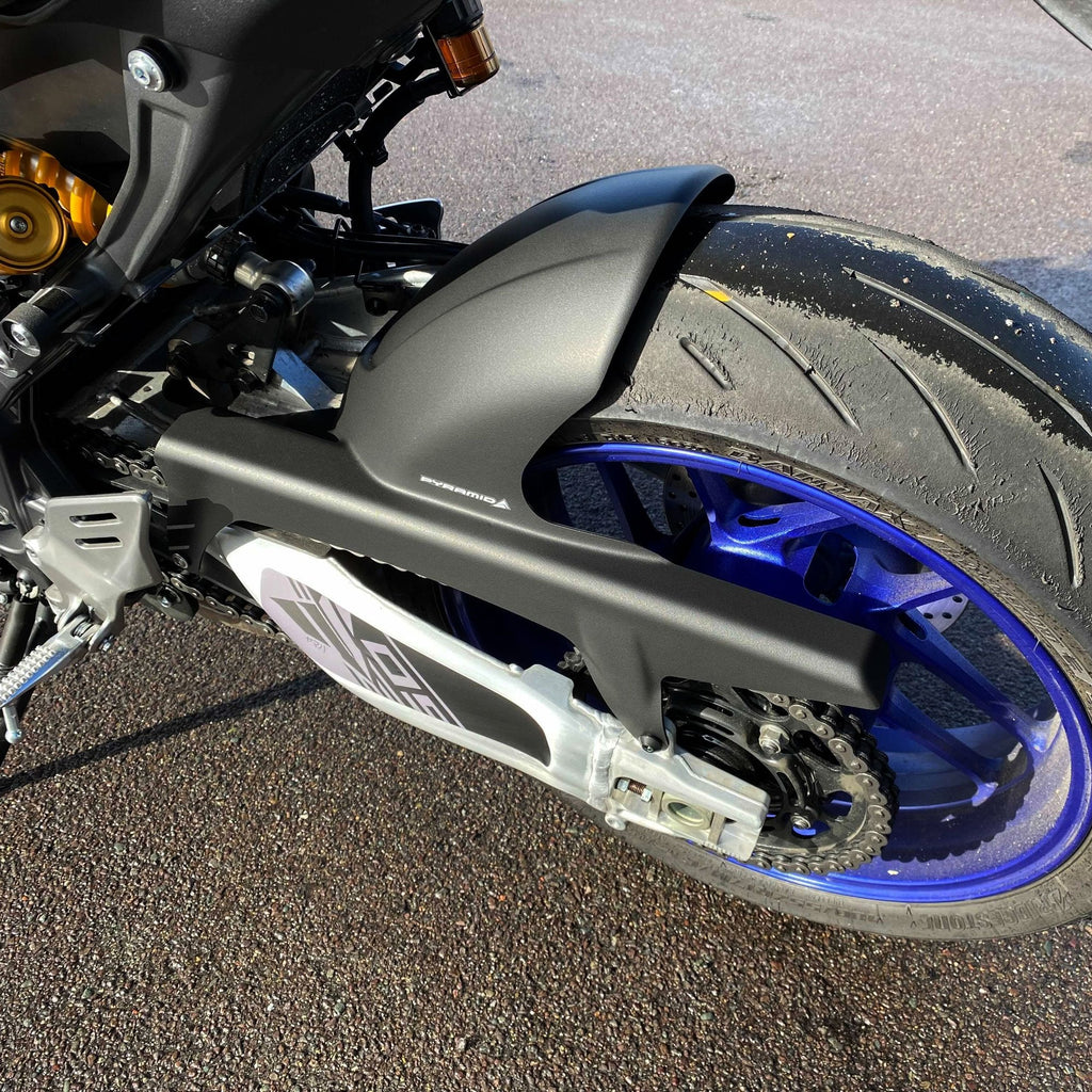 • Protect your Yamaha MT-09 whilst adding a stylish upgrade with ourΒ Rear Hugger. Designed to protect your bike from road debris, dirt, and anything else your rear wheel decides to flick up.