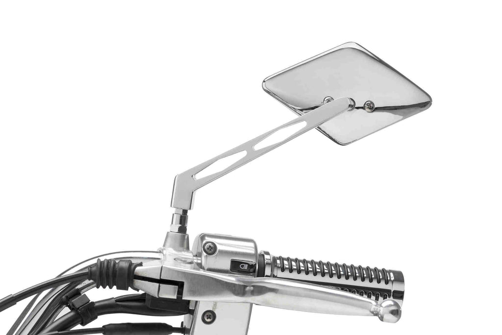 The Customacces Diamond Mirrors are the perfect addition to your motorcycle. They come as a pair and are made from durable plastic with a chrome finish. Their diamond shape adds a unique style to your ride that you won't find with any other mirror.