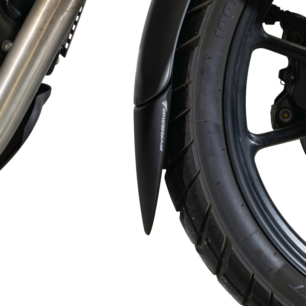 The Pyramid front mudguard extension the Extenda Fenda is one of our trademark products which we manufacture from high quality ABS. The Extenda Fenda offers a durable and long-lasting extension to your front mudguard. This product will help keep your exhaust headers and lower engine free from dirt as well as protecting your expensive radiator from stone damage. Specifically designed to follow the contour of your motorcycle's front guard our Extenda Fenda is supplied with both plastic rivets for mechanical fitment and a sheet of our specially sourced 'Stick Fit Pads' for those customers who would prefer not to drill their front mudguard. Our Extenda Fenda is simple to install and will arrive safely packaged together with comprehensive fitting instructions and all necessary fittings as detailed above.