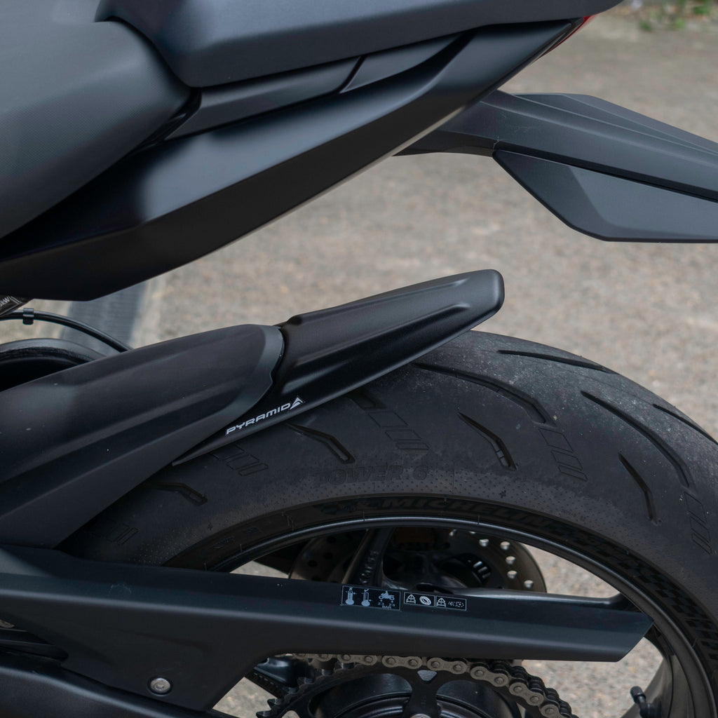 Pyramid Hugger Extensions are manufactured from high quality ABS or carbon fibre and offer a durable and long lasting extension to your motorcycle's OEM hugger. These products are specifically designed to follow the contour of your motorcycle's existing rear hugger for the perfect fit. Our Hugger Extensions are supplied with plastic rivets for mechanical fitment together with our specially sourced 'Stick-Fit Pads' for those who would prefer not to drill the existing hugger. Our Hugger Extension is simple to install and will arrive safely packaged complete with comprehensive fitting instructions and any additional fittings which may be required. No modification to your motorcycle is necessary if you choose to fit using our Stick Fit Kit only.