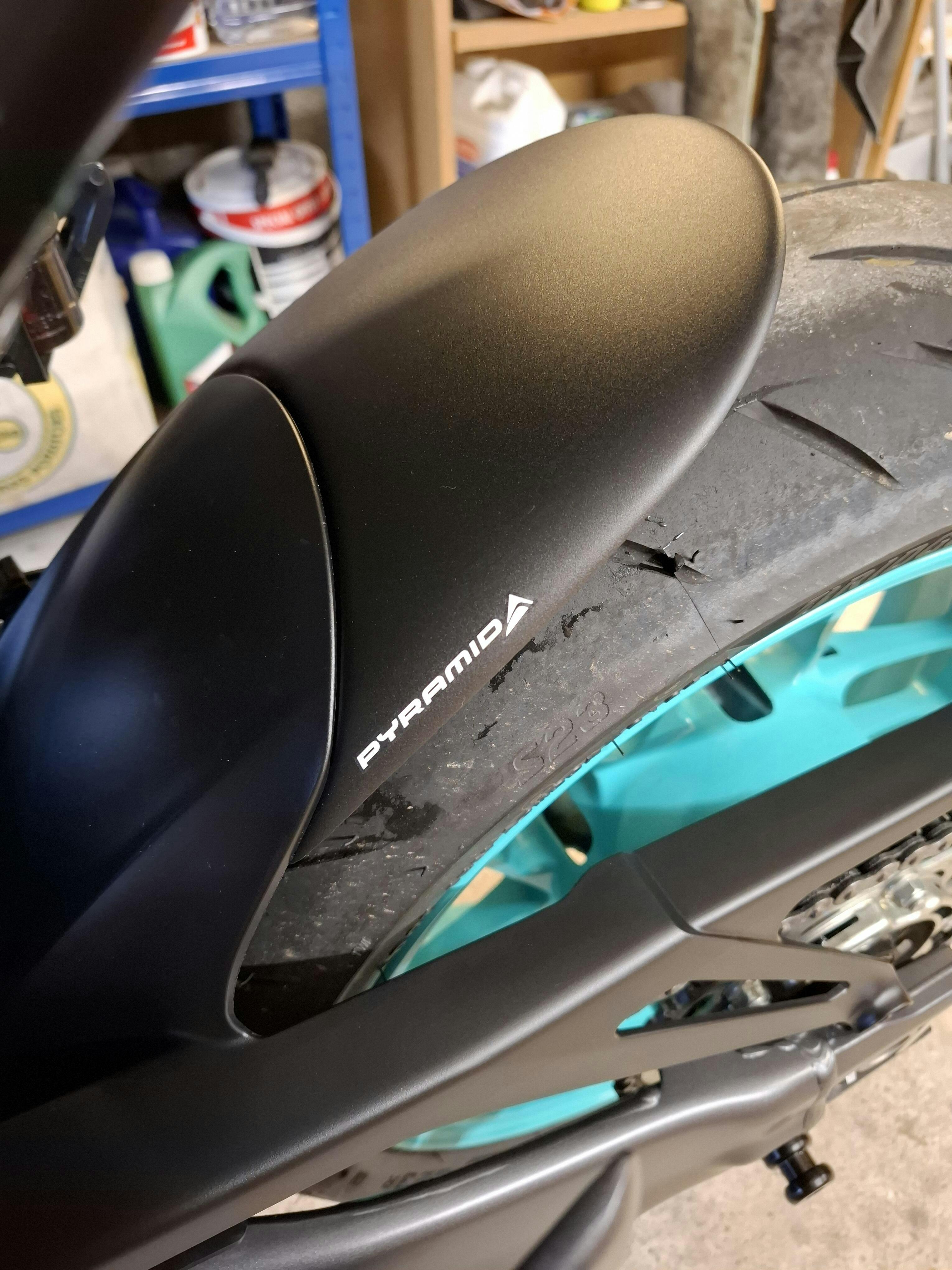 Pyramid Hugger Extensions are manufactured from high quality ABS or carbon fibre and offer a durable and long lasting extension to your motorcycle's OEM hugger. These products are specifically designed to follow the contour of your motorcycle's existing rear hugger for the perfect fit. Our Hugger Extensions are supplied with plastic rivets for mechanical fitment together with our specially sourced 'Stick-Fit Pads' for those who would prefer not to drill the existing hugger. Our Hugger Extension is simple to install and will arrive safely packaged complete with comprehensive fitting instructions and any additional fittings which may be required. No modification to your motorcycle is necessary if you choose to fit using our Stick Fit Kit only.