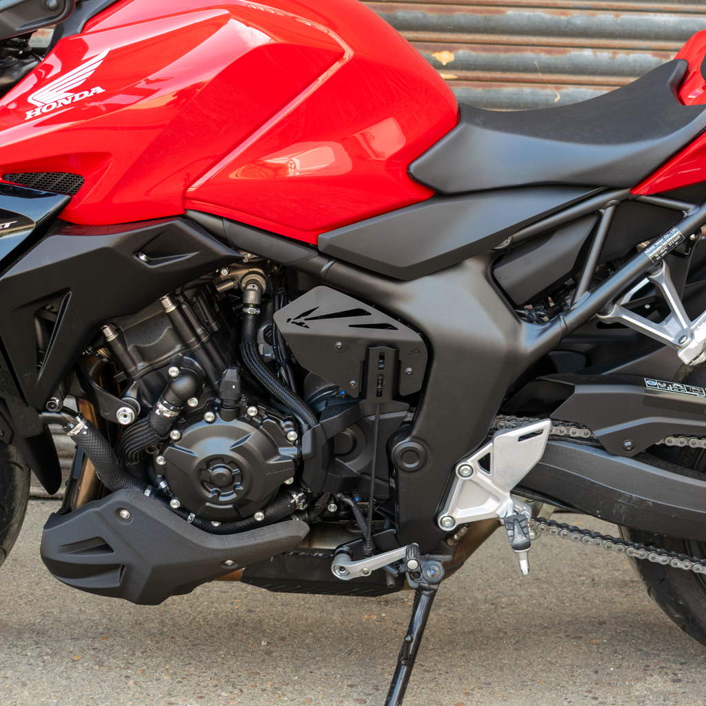 These Pyramid Infill Panels are designed to subtly cover the upper section of the shifter rod while neatly filling an otherwise exposed gap in the frame. This addition brings a cleaner, more refined look to your motorcycle’s side profile while offering light protection from spray and debris. Each panel arrives securely packaged with full fitting instructions and any required fixings. No modifications to your bike are needed.
