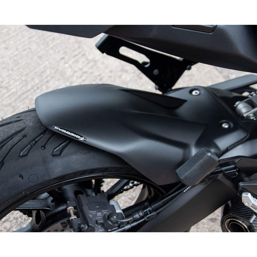 Pyramid Huggers are one of our trademark products designed specifically for your motorcycle and offering substantial added protection and individual styling. Where possible we incorporate protection that extends below the swingarm together with a built-in chainguard to replace your existing guard meaning that your shock absorber and chain are fully protected. Available in a wide range of colour schemes our Huggers will arrive safely packaged together with comprehensive fitting instructions and any additional fittings which may be required. No modification to your motorcycle is necessary.